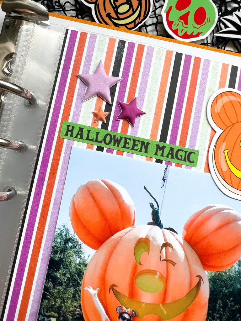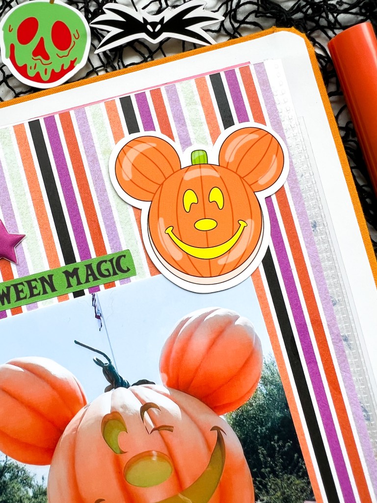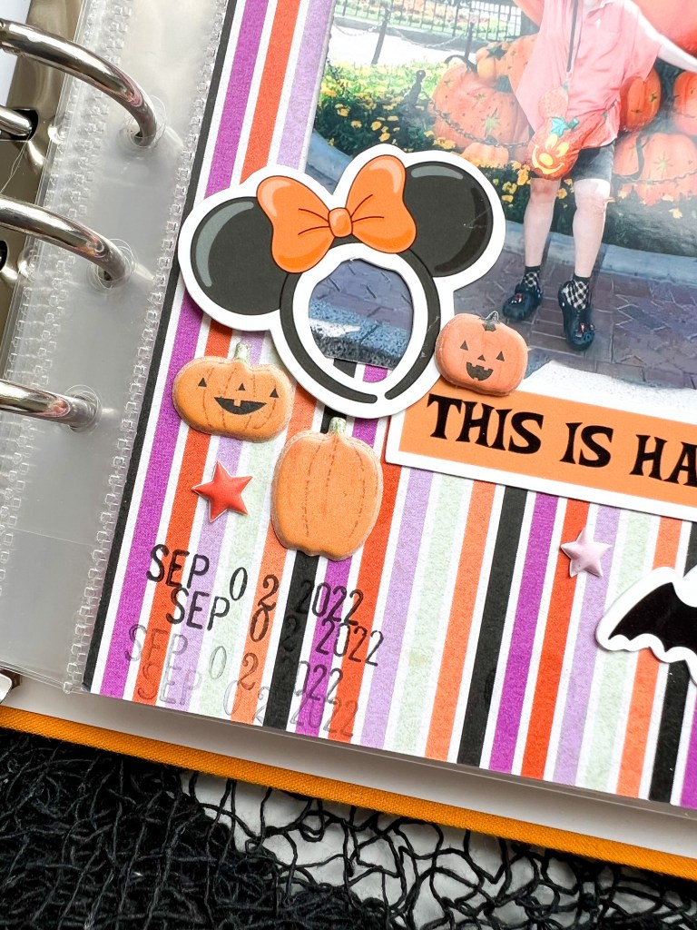 The Boo to you ephemera ties into the ears I was wearing for the day, they were bat ears! I knew I wanted to somehow incorporate bats in the design while not overpowering the pumpkins.